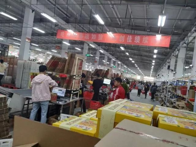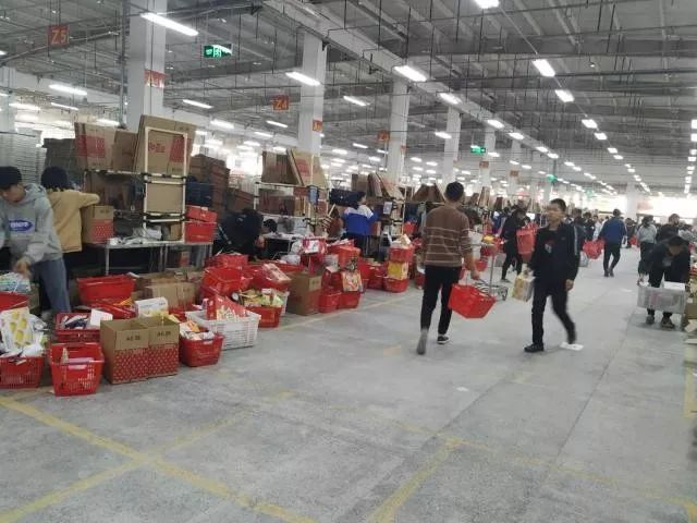 电子商务智能配货中心现场到处是封箱、拉笼车、拣货车的声音,框框当当,奏成双11发货现场一道美妙的音符!