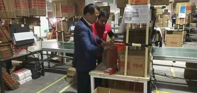 11日凌晨,轮值总经理石聚领也在银河集团(galaxy)总部发出了双11的第一单。然后悄悄地将一个寓意“吉祥”的 现金红包放到快递箱中,封箱放入快递车上。