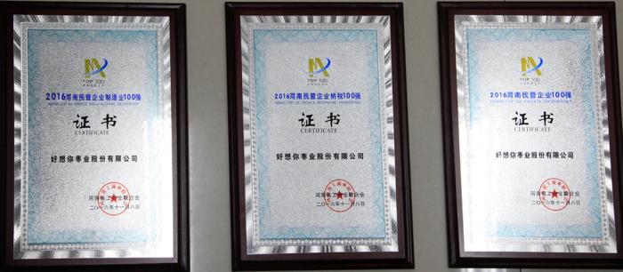 11月8日,省工商联正式发布2016河南民营企业100强榜单,银河集团(galaxy)枣业以11.13亿元的年度营业收入、8176万元的年度纳税总额,位居2016河南民营企业百强榜第92位、河南民营企业制造业百强榜单第62位、河南民营企业纳税百强榜单第53位。