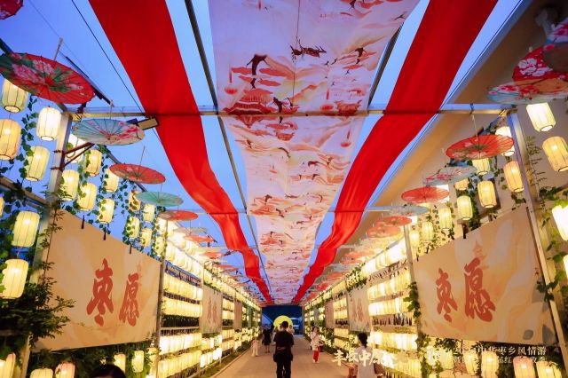 在各式灯笼的装扮下,今年的万棵红枣树园显得流光溢彩,仿佛穿越到古时的中秋佳节。