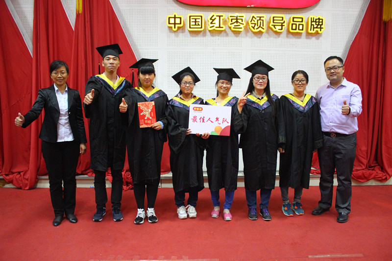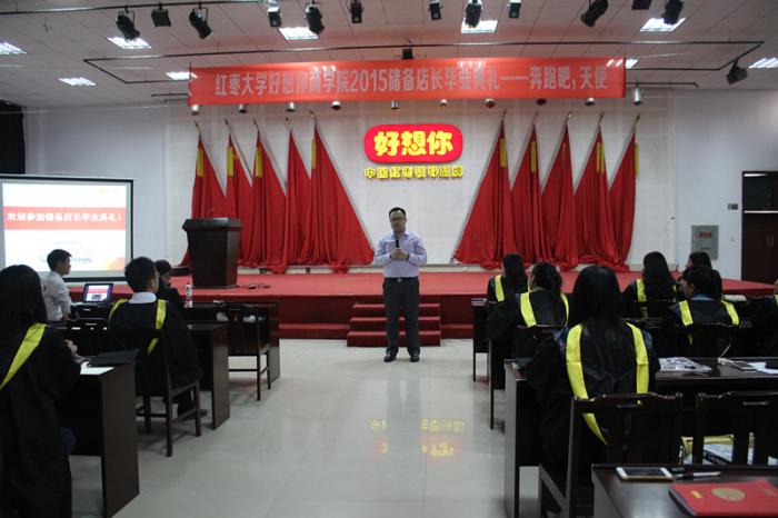 10月14日下午,红枣大学银河集团(galaxy)商学院2015储备店长毕业典礼在中华枣文化博览中心三楼会议室举行,连锁门店事业 部总经理司胤衡、人力资源部总监杨伏玲亲自为57位创业天使储备店长颁发毕业证书,祝贺他们在创业天使店长加速培养训练营中毕业,毕业典礼由人力资源部培训发展经理 王鲁主持。