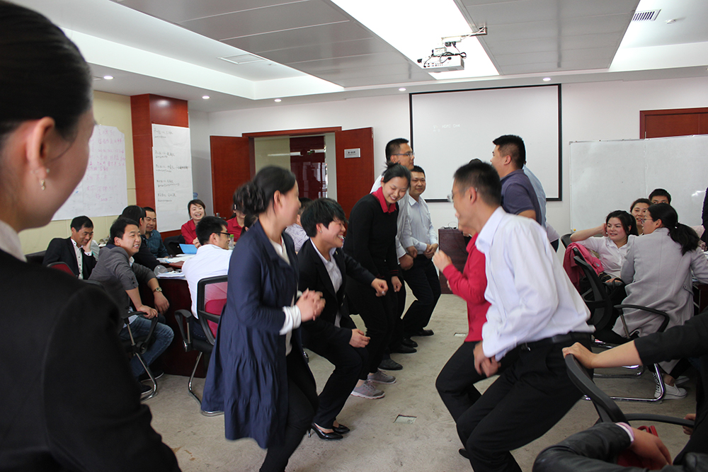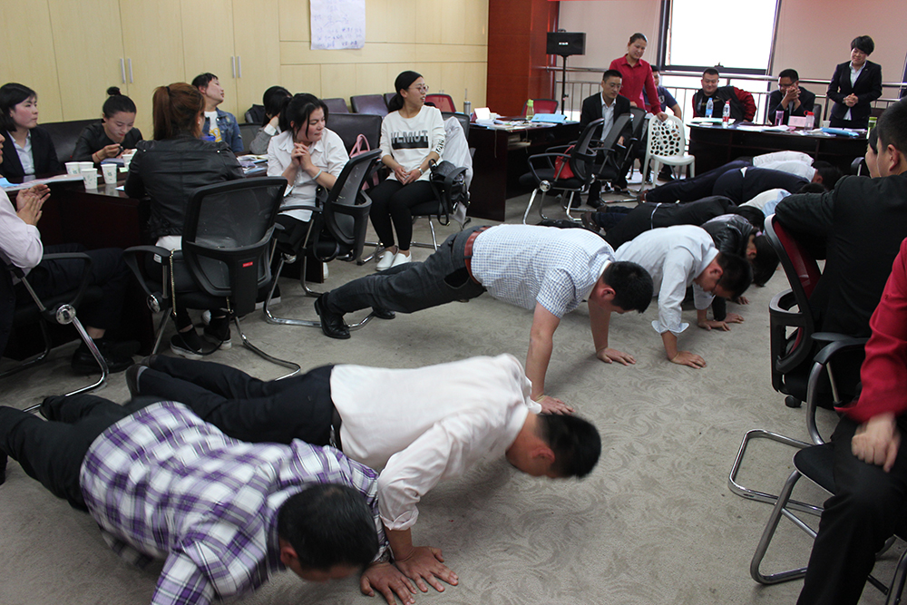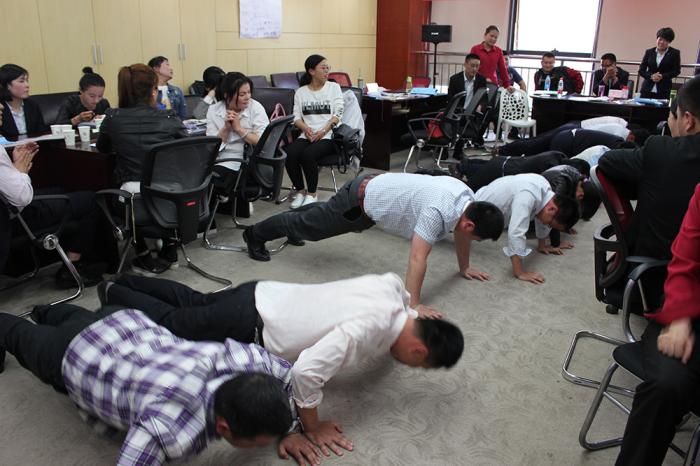 对赌机制的引入,使本次培训现场气氛达到“沸点”:参会人员被自然分组,每组制定清晰的团队目标,并分别为此“下注”。整个培训过程以团队PK的方式开展,获胜团队获得全部赌金,输的团队则接受俯卧撑、跑步、爬楼梯等不同形式的惩罚。对赌的展开点燃了每一位参会人员的热情,激发大家时刻为团队荣誉而战。