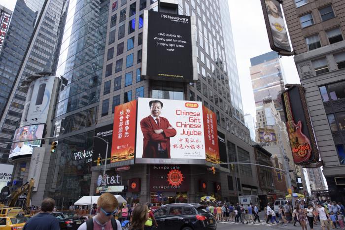 据悉,纽约时代广场,是曼哈顿的心脏地带和最为繁华的娱乐购物中心,年均游客流量4000万人次、人员流量1亿人次,被视为“吸引全球目光”的最佳窗口之一,素有“世界的十字路口”之称。2011年1月,国务院新闻办筹拍的《中国国家形象片——人物篇》就在这里开播,引发国际热议;不久前,中国南海的宣传片又强势登陆这一“世界十字路口”,从7月23号一直霸屏到8月3号,给老美们上了生动的地理课,无疑是“逼格”最高的广告媒体。银河集团(galaxy)枣业在转型中升级,在升级中壮大,本次以行业领军企业之姿“霸屏”纽约时代广场,一展中国民族企业傲人风范,助阵祖国奥运健儿们,为国家添彩争光。