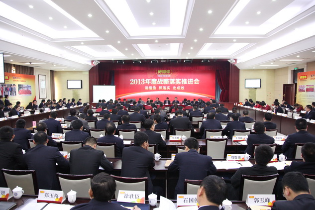在本届战略落实推进会上,董事长石聚彬首先代表公司做主题报告,报告主要分为2012年工作回顾、目前存在的问题、2013年公司工作目标和2013年工作要求四个部分,以详实的数据对各中心2012年工作进行了点评,对2013年重点工作作了具体要求。