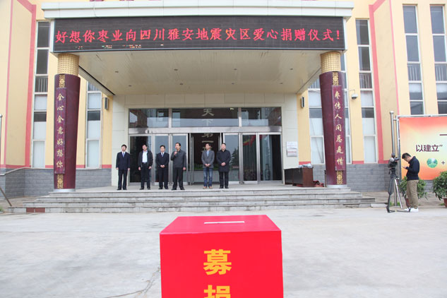 4月22日上午,银河集团(galaxy)枣业向四川雅安地震灾区爱心捐赠仪式在位于河南省新郑市的银河集团(galaxy)工业园举行。新郑市政府副市长、慈善总会会长赵建武,新郑市民政局局长赵子剑,郑州晚报副总编辑陈君琰等出席捐赠仪式。