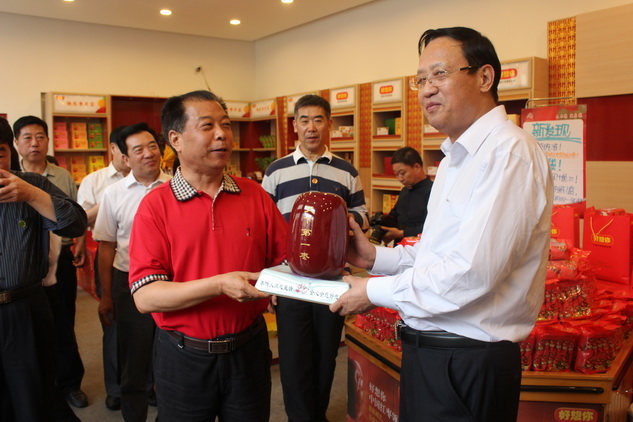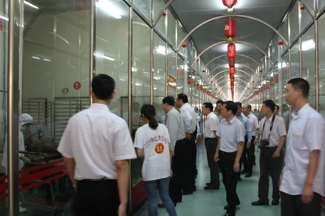 进入中华枣文化博物馆里,“中华第一枣”,源远流长的红枣历史沿革,丰富有趣的红枣与名人,上百种红枣标本、古香古色的枣木雕刻,结婚用枣、皁枣有礼等民俗雕塑以及其中蕴含的博大精深的红枣文化深深吸引着众位领导驻足。随后, 张委员长一行来到干净整洁的现代化车间,车间内机器轰鸣,流水线上工作人员娴熟有序地工作着,一片繁忙景象。石董事长为领导详细地介绍着相关的工艺、流程和产品的特点。