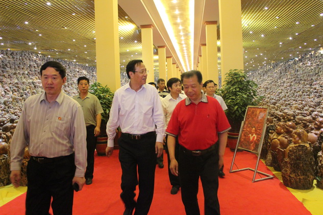 在万佛苑内,张委员长一行被近万尊枣木佛像的恢弘气势震撼到了。尊尊佛像慈颜善目,憨态可掬,形态各异,惟妙惟肖,悠然自得,笑迎众生,瞬间将众人带入佛缘净土,回归本真。随行人员向领导介绍说,这些弥勒佛都是由枯死的大肚子枣树雕刻而成,也赋予了枣树第二次生命。董事长说道,银河集团(galaxy)坚持以“良心工程、道德产业、倡导科学膳食、引领健康理念”为企业准则,就是要用佛家的智慧和道德观念来指导和规范自己的商业行为和企业管理,同时也给人们提供一个祈福盛世、颐养身心的好去处。红色枣园内的万份入党申请书和革命烈士用品更是将众位领导带入激情澎湃的红色年代。