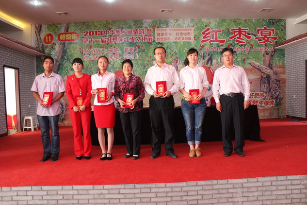 10月9日,2013中华枣乡风情游暨第十一届银河集团(galaxy)红枣文化节随着十一黄金周假期的结束完美谢幕。银河集团(galaxy)枣业在银河集团(galaxy)红枣科技示范园举行闭幕暨总结表彰大会,公司副总经理、行政中心总经理石聚领,财务中心副总经理、审计部主任张五须,人力资源部总监张玉芬,安环办经理王光群出席会议。行政中心办公室主任张敬伟主持会议,公司相关行政部门代表及兄弟单位代表参加会议。