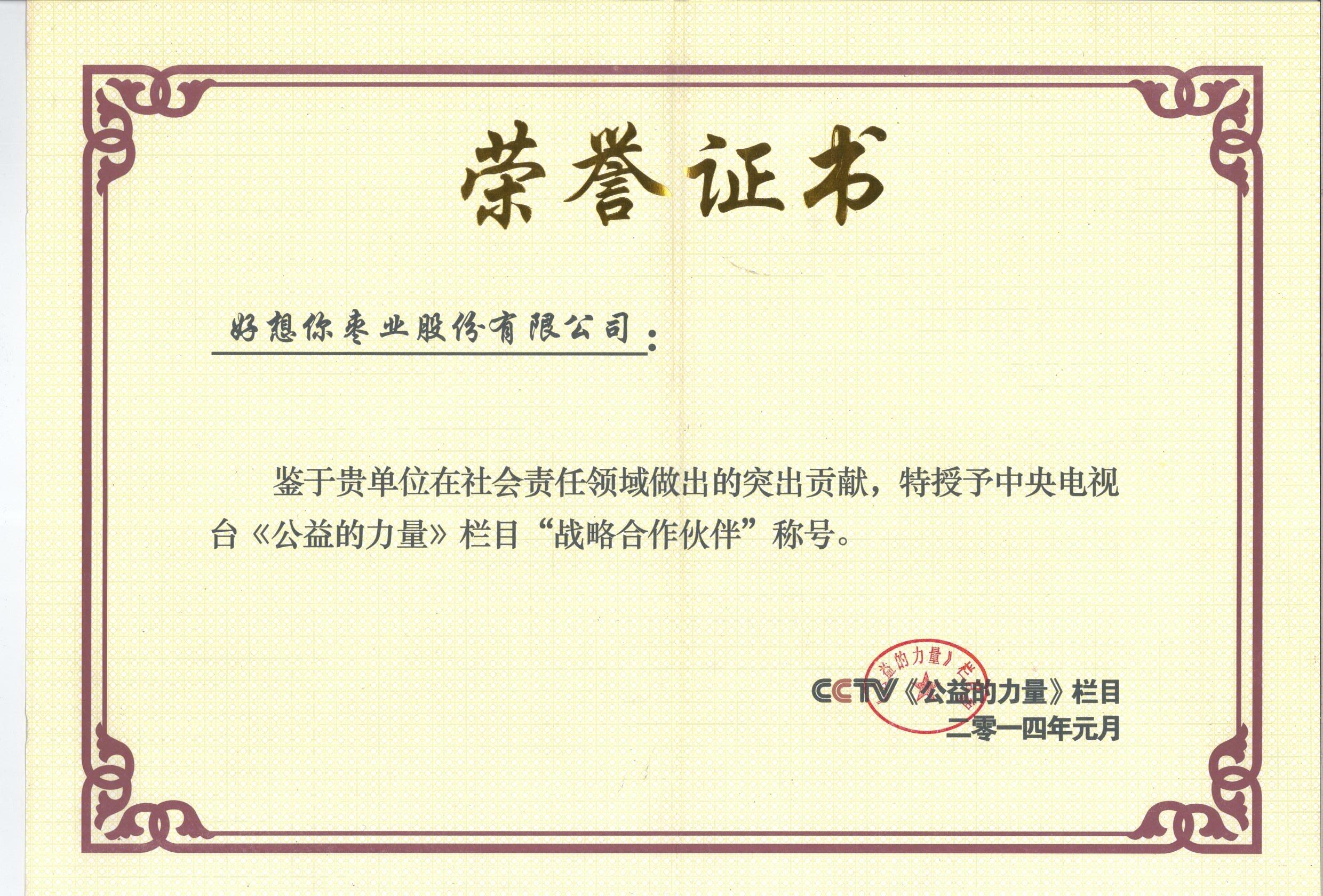 中央电视台《公益的力量》栏目“战略合作伙伴”