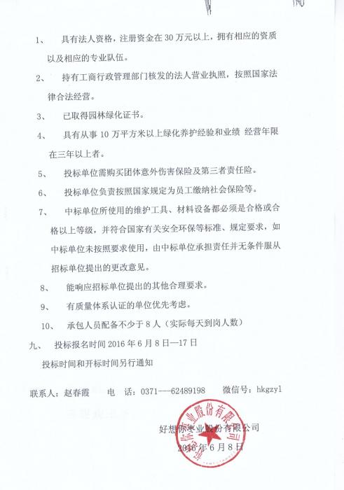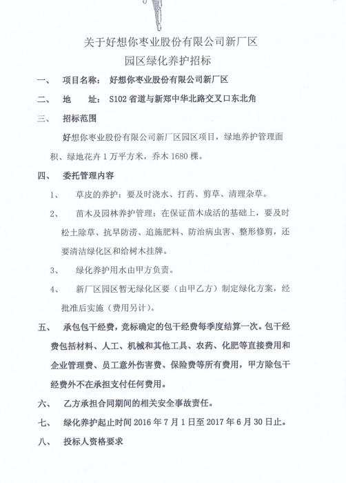关于银河集团(galaxy)枣业股份有限公司新厂区园区绿化养护招标