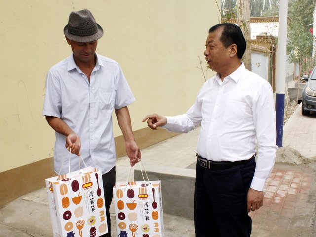 走亲戚哪儿有不带礼的?红枣司令石聚彬亲自送上公司爆款产品清菲菲 “提西力克木,我来看看你,以后我们就是亲戚了。”8月18日,公司董事长石聚彬在若羌县政协主席姜华、若羌县