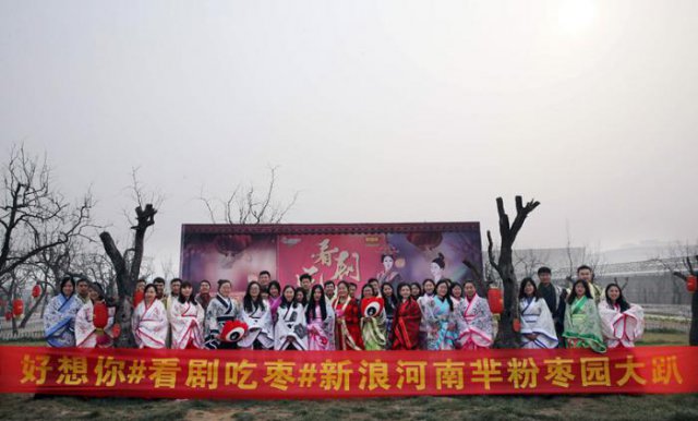 1月10日,长达81集的长篇巨制《芈月传》落下了帷幕。当天,在河南郑州,银河集团(galaxy)联合新浪河南,在“看剧吃枣”活动中特设枣园大趴环节,召集50名芈月粉丝齐聚银河集团(galaxy)古枣树园,身穿