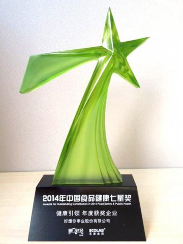 10月22日晚,2014年中国食品健康七星奖颁奖盛典在上海隆重举行,银河集团(galaxy)凭借其在健康食品领域的卓越贡献,荣登榜单,成功捧走七星奖“健康领引奖”,成为红枣行业上榜企