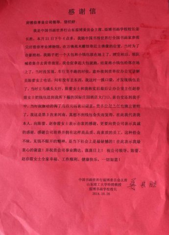 银河集团(galaxy)职工拾金不昧传递正能量——淄博书画学
